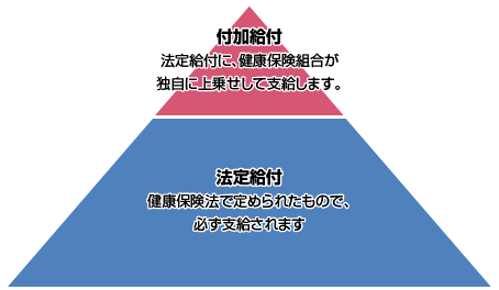 健康保険では、業務外で発生した病気やけがなどに対し、定められた各種の給付金を支給します。給付には、法律で決められた「法定給付」と健康保険組合が独自に上乗せする「付加給付」があります。